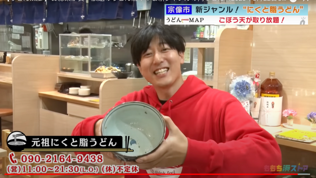 ももち浜ストアの大人気の企画のうどんMAPに「にくと脂うどん」が出演!